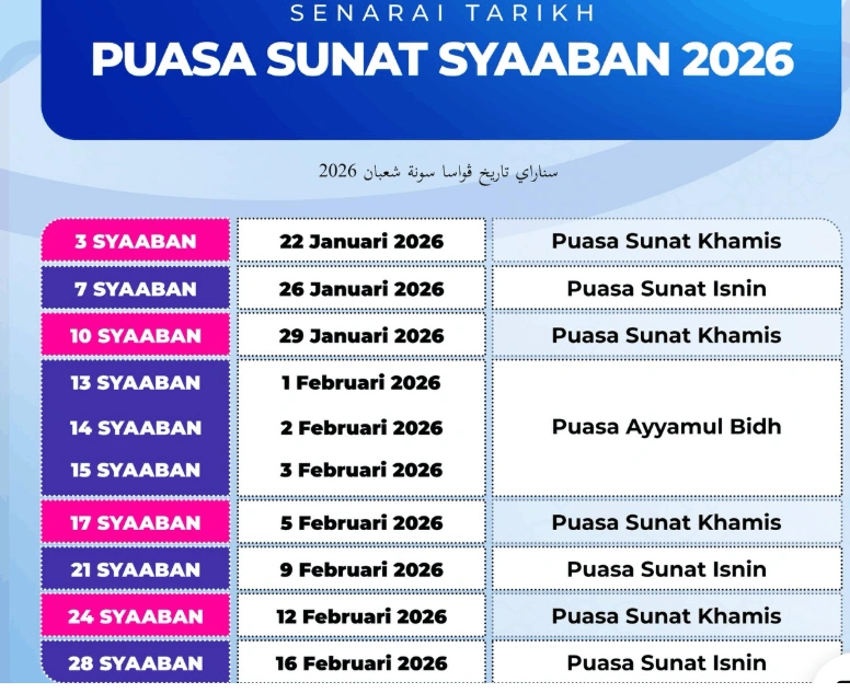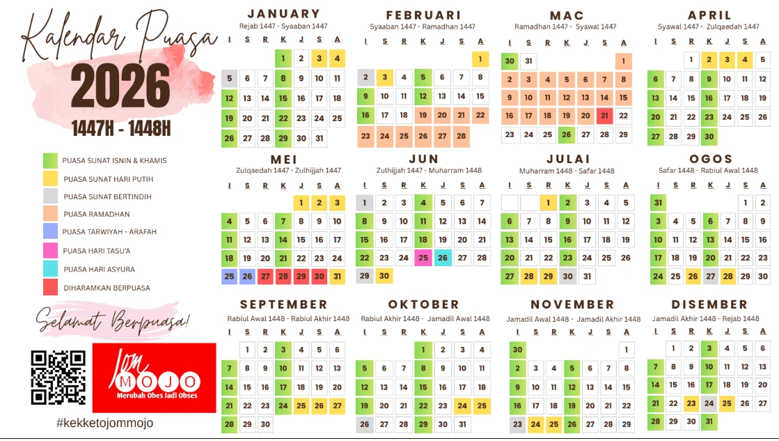 Kalendar Puasa Sunat 2026 Dan Wajib Tahun 1447-1448H